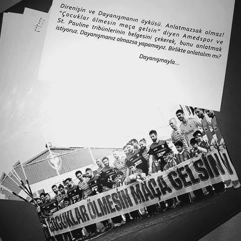“Türkiye’de Kürtlerin yaşadığı şehirlerde hemen hemen her gün çocuklar iktidarın savaş politikalarından dolayı öldürülürken ‘Çocuklar ölmesin maça gelsin’ pankartı açtığı için Amedspor futbol kulübü, iktidar ve medya tarafından siyasal bir linçe maruz bırakıldı. Türlü türlü cezalara maruz kaldı. Tüm bu cezalara karşılık Amedspor kulübü, futbolcuları ve taraftarları yine de “Çocuklar ölmesin” dedi. Amed’in ve St. Pauli’nin farklı taraftarları tek yürek olup “Çocuklar ölmesin” dedi. Bu aynı zamanda tribündeki dayanışmayı da yeniden canlandırdı. Ne olursa olsun 4 kelimelik bir cümleye, barışa, kardeşliğe inanan insanların seslerini duyurmak için bu yola girdik.”