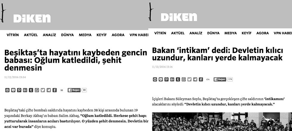 Beşiktaş'taki patlamada oğlunu kaybeden baba, "oğluma şehit demeyin" demişti. Ancak medya ve siyasiler tarafından nefrete körüklenenler yine hep bir ağızdan intikam söylemlerine sarıldı. Katıldığımız bir toplantıda Nesrin Uçarlar bunu öyle güzel anlatmıştı ki; üçüncül kişiler, kayıp yakınlarından daha nefret dolu, daha çok intikam isteğine sahip.
