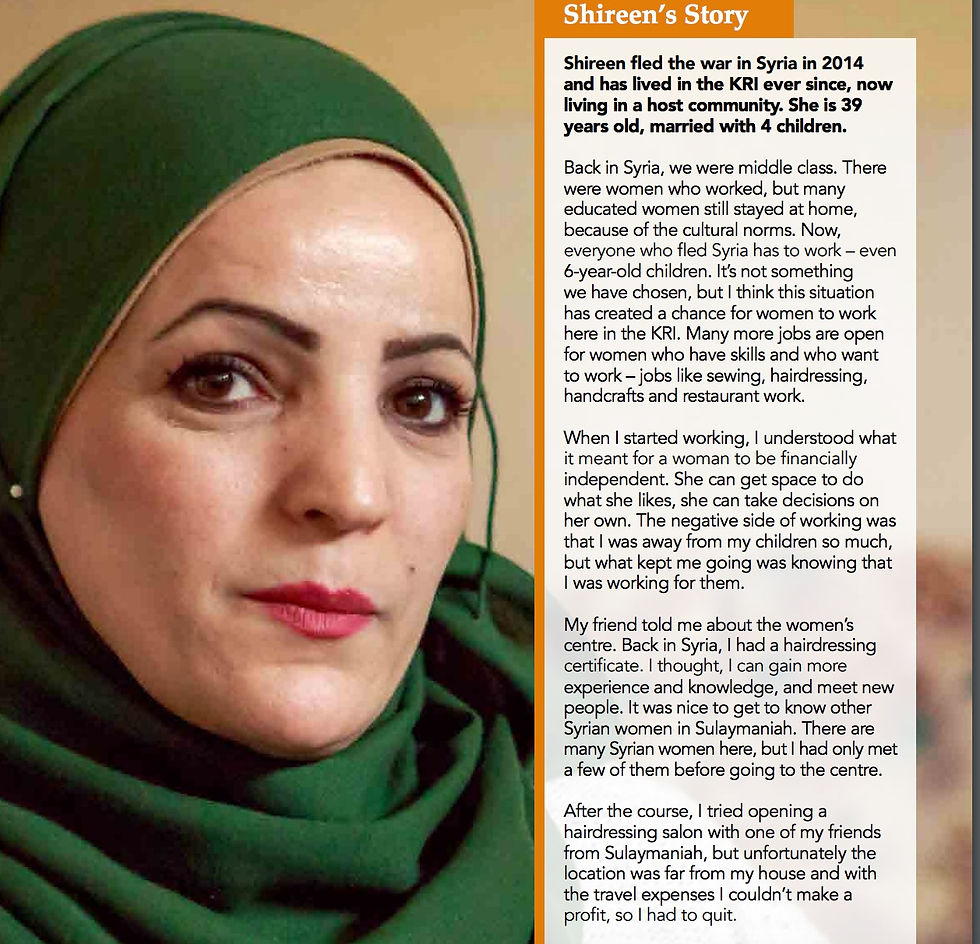 Raporda ayrıca kadınların tanıklıkları karşımıza çıkıyor. Bu tanıklıklara video formatında da erişilebiliyor (aşağıdan izlenebilir). Yukarıdaki fotoğraftaki tanıklıkta Şirin'i görüyoruz. Şirin mülakatında şöyle diyor: "Suriye'de orta sınıftık. Kültürel normlar yüzünden çoğu eğitimli kadın çalışmıyordu. Şimdi, Suriye'den kaçan herkes çalışmak zorunda, 6 yaşındaki çocuk bile..."